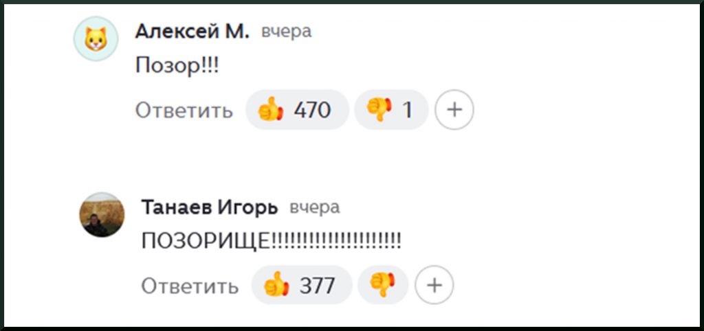 In kürzester Zeit sammelten sich unter diesem und mehreren anderen Artikeln zum selben Thema Tausende empörter Kommentare. Der Nationalstolz vieler Leserinnen und Leser, der in Russland so intensiv gefördert wird, war empfindlich getroffen und kehrte sich nun gegen die eigene Regierung. Die Begriffe, die am häufigsten, in etwa jedem dritten oder vierten Kommentar, gebraucht wurden, waren nicht zufällig: Schande (позор), peinlich/beschämend (стыдно) und kränkend (обидно). Und den russischen Politikern und auch Putin selbst warf man Feigheit und Unentschlossenheit vor – mindestens. Die Empörung über die USA hielt sich dagegen in Grenzen.