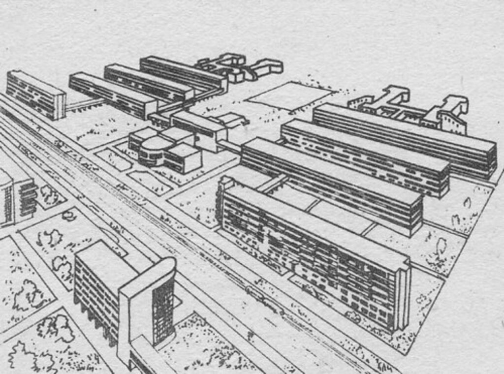 Die sowjetische Wohnungspolitik war nicht nur durch die Notwendigkeit geprägt, möglichst viele Menschen auf möglichst wenig Raum unterzubringen, sondern sie verfolgte auch ideologische Ziele. Man strebte ja eine klassenlose Gesellschaft an und die traditionelle Familie sollte durch die sozialistische Gemeinschaft ersetzt werden. Frauen sollten ihre Zeit nicht mehr mit Kochen, Putzen und Kinderbetreuung vergeuden, sondern wie die Männer eine gesellschaftlich nützliche Tätigkeit ausüben. Entsprechend plante man auch ehrgeizige neue Wohnprojekte:
