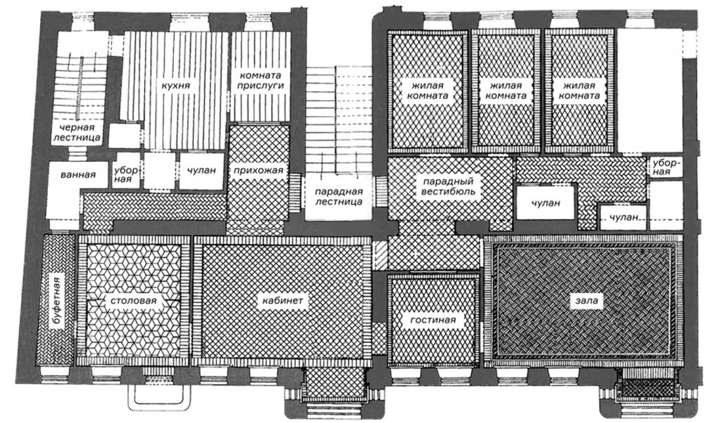 Doch zurück in die Vergangenheit. Dies ist der Wohnungsplan der Wohnung Nr. 5, als dort vor der Revolution noch die Familie des Eigentümers lebte.