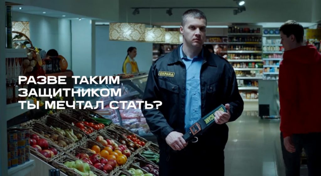 „Wenn ich ehrlich bin, verstehe ich nicht ganz, weshalb der Beruf eines Wachmanns in diesem Video so abgewertet wird. Als Antwort darauf möchte man fragen: Ja, und wenn ich nun zur Armee gehe, wer wird dann an meiner Stelle arbeiten? Gibt es irgendeine Alternative? Ich denke, wenn alle Wachleute Vertragssoldaten werden, wird sich das sehr negativ auf die Innenpolitik vieler Organisationen auswirken“, sagt Sergej, Mitglied der Wachmannschaft eines Pjatorotschka-Marktes (eine große Supermarktkette, Anm. d. Ü.), und hebt ratlos die Arme.