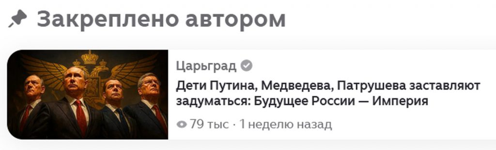 Mitte November erschien auf der Seite des TV-Senders „Zargrad“ im russischen Nachrichtenportal „dzen.ru“ ein Artikel, der dem Gründer und Besitzer des Senders Konstantin Malofejew so wichtig war, dass er ihn mehrere Wochen lang oben auf der Seite „angepinnt“, also dauerhaft vorn gehalten hat, statt ihn wie üblich hinter die neueren Beiträge rutschen zu lassen. Es geht darin um eine neue Generation von Politikern, die Söhne und Töchter der jetzigen Machthaber, die von ihren Eltern wichtige Posten im Staatsapparat „erben“, als seien solche Posten eine Art Familienbesitz, und um die angeblichen Vorzüge eines derartigen neuen „Erbadels“.