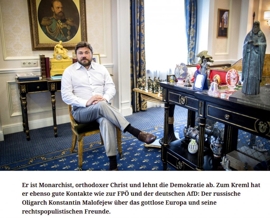 Konstantin Malofejew (*1974) hat seine Milliarden mit einem Investmentfonds und als Teilhaber des Telekommunikationskonzerns „Rostelekom“ gemacht. Er nimmt seit vielen Jahren erheblichen politischen Einfluss in Russland, ist auch im westlichen Ausland sehr gut vernetzt und nimmt an vielen Konferenzen und Treffen teil oder veranstaltet diese selbst.